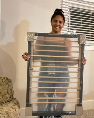 A: Hello Michelle - Awesome question! This wall-mounted drying rack is easily opened to instantly add more space for hanging your clothes, linens and more to dry and the total drying surface area is 3 square feet. This item also has 25.2-inch by 36.42-inch side. We hope this is helpful and have a wonderful day! - Bri