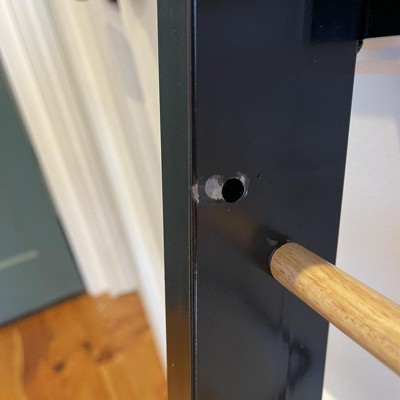 - Sleek black metal and natural wood design for a stylish look