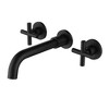Durable solid brass wall-mounted bathroom faucet with a brushed gold finish, featuring a drip-free cartridge and classic cross handles for easy control. The sleek, easy-to-clean design enhances any bathroom style, with a 7-layer coating for rust and fingerprint resistance.