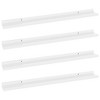 - This floating wall shelf set is a modern way to upgrade your living space with elegance and function. Made from tough MDF wood, the shiny white finish not only suits various styles but also creates a sleek backdrop for showcasing your cherished items. This shelf set includes four pieces, each 31.5 in long, 3.5 in wide, and just 1.2 in high.The wall-mounted design saves floor space while providing practical storage for lightweight items, making it great for various rooms.Each shelf has a glossy white finish that reflects light, adding depth to any wall and improving room vibes.Easy to clean with a damp cloth, this shelf set is handy for daily use and upkeep without needing harsh chemicals.Fitted with two mounting points per shelf, the installation is simple and ensures stability for a polished look on your walls. Number Of Items: 4Color: WhiteShape: RectangularMaterial: Wood MDFFinish: High-GlossIndoor/Outdoor: Indoor OnlyCover Included: NoRoom: Living RoomCapacity: Can hold up to 11 lbsMaximum Weit: 11 lbsMounting Included: Wall/ceiling fixtures - e.g., specific screws or wall plugs - not includedDimensions: 3.5 x 31.5 x 1.2 in (W x L x H)Surface Height: 1.2 inHole Diameter: 0.2 inWeight: 6.61 lbsLadder: NoDelivery Contains: 4 x Wall shelfAssembly Required: YesRecommended Number of People for Assembly: 2