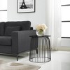 This modern end table brings a great mix of style and function to any space. The versatile accent table has a geometric cage base design for eye-catching modern flair and impressive stability. The smooth, round tabletop wipes clean quickly and easily, making it ideal for use as an end table or nightstand that you rest drinks or snacks on. A smart addition to your living room, bedroom, or any other space, it makes a bold statement anywhere you place it and it’s great for holding a lamp, sculpture or decorative vase. There is no assembly required, so you can start using this side table as soon as it arrives.