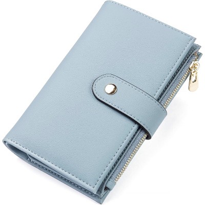 Wallet for Women Clutch Double Zip Around Credit Card Holder Leather Women's Wallet Large Capacity 1A-Light Blue 7.87 x 4.13 x 1.57