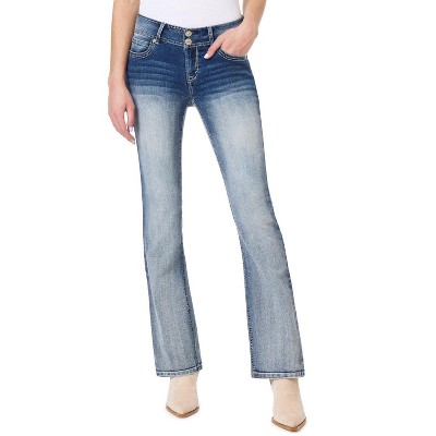 WallFlower Women's Luscious Curvy Bootcut Mid-Rise Bling Insta Stretch Juniors Jeans Standard and Plus