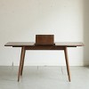With a water-resistant and scratch-resistant finish, cleaning is effortless, ensuring the table maintains its beauty over time. The rounded corners add to the thoughtful design, making it a great choice for any home. Featuring a mid-century modern aesthetic, this dining table blends seamlessly with various decor styles, adding warmth and sophistication to your space.