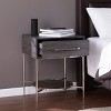 - Nightstand crafted with Iron, Glass, Wood, PVC Veneer