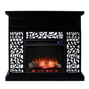 Sold as a set of multiple boxes. Add a touch of modern to your decor with this electric fireplace. A spacious mantel displays framed photos or a vase of flowers, while unique, lattice-inspired details highlight the mirrored surround. Perfect for warming your living room or dining area, this freestanding fireplace features flickering flames and embers that work with or without heat for enjoyment all year long. Give your home a cozy contemporary feel when you add this electric fireplace.
