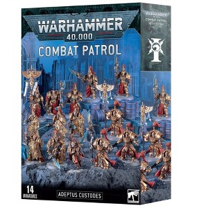 Combat Patrol: Adeptus Custodes gives you the means to persecute the enemies of the Throne with extreme prejudice in fast-paced games of Warhammer 40,000. It contains all the units you'll need to start a new army of gleaming golden warriors, or massively expand your existing collection with essential units. It also saves you money over buying each kit individually. This balanced force includes a leader, a stalwart unit of Custodian Guard, a veteran unit of Custodian Wardens, and an extra elite unit of Terminator Armour-clad Allarus Custodians, giving you a full force for Combat Patrol games – the rules are available as a free download on the Warhammer Community website.