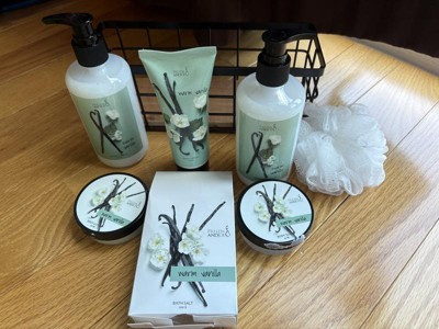 These products smell like the inside of a Walgreens. There are no vanilla notes but instead hints of jasmine and eucalyptus. This set smells like it came from a dollar store. Save your money and avoid this set.