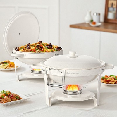 Warmounts 5QT White Maifanite-Coated Chafing Dish Buffet Set Food Warmer with Glass Lids & Holders