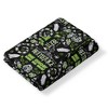 - Features a repeating pattern of Beetlejuice in his many forms, along with his iconic phrase "Ghost with the Most"