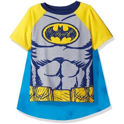 Your little hero is ready for a comic-book adventure in this awesome DC Comics cosplay shirt. This cool short-sleeve shirt comes with a detachable cape and is designed to look like the iconic superhero costume of your kid's favorite Justice League member. Choose from cute designs of Superman, Batman, and Robin. Made of a soft material that keeps your child comfortable, this costume shirt is perfect for Halloween and everyday wear..