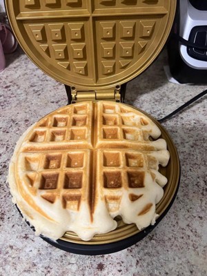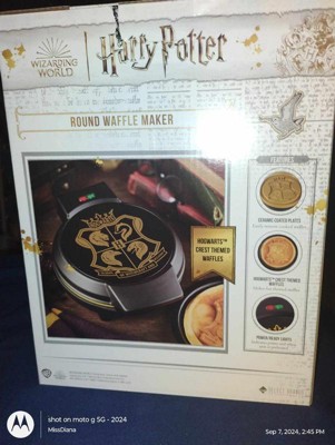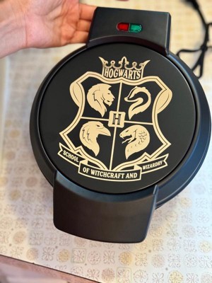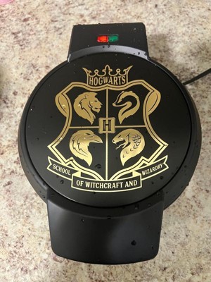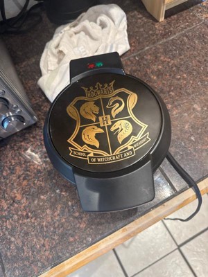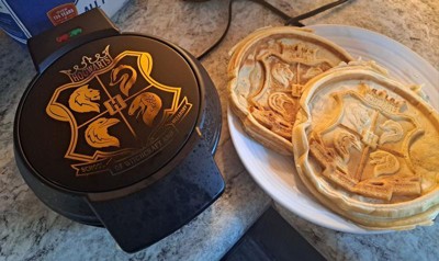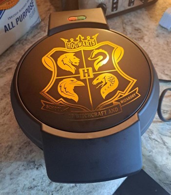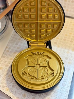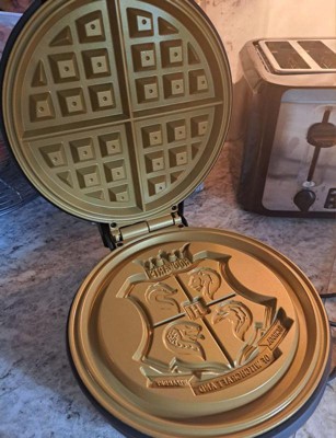 [This review was collected as part of a promotion.] The gold gives the waffle maker such a luxurious edge. It’s gorgeous! It’s a perfect size for the waffle and makes the perfectly cooked waffle. I’m a huge Harry Potter fan so seeing all the house symbols makes me so happy! This would be a great gift especially for white elephant