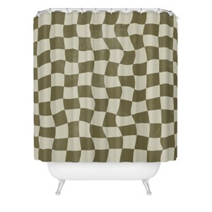 Warped Checkerboard Shower Curtain Olive - Deny Designs