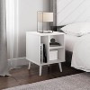 For a furniture piece as unique as your style, the Warson Mid-Century Modern Nightstand is the perfect fit. This retro end table features three open storage cubbies to keep your bedside essentials organized. Keep your phone or journal on the upper shelf, while the tall narrow section is perfect for vinyl records or books. The Warson Mid-Century Modern Nightstand features solid wood tapered legs that add retro style; a laminated MDF upper keeps your table easy to clean. At just over 20 inches high, this wooden night table pairs perfectly with lower profile platform beds. Warson’s effortless midcentury modern profile can add flair to your living room or home office, too, thanks to four different attractive wood-grain finishes. Keep your essentials at hand and in vintage style with the Warson Mid-Century Modern Nightstand. Ships to your door in a single box and assembles in 15 minutes (2 adults recommended).