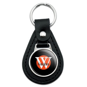 - QUALITY MATERIAL: Our durable round keychain is crafted from leather with a glossy resin-topped emblem featured design shown on one side. Approximately 1.5" (3.8cm) x 2.5" (6.4cm) in overall size, emblem is 1" (2.5cm)..