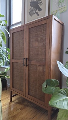 submitted byPhilip - 6 years agoTarget staff supportA: The cane is a very open weave. I see no problem at all with placing speakers inside the cabinet. Also, in each section of the cabinet, the shelf is removable or adjustable to allow for the height of your speakers.