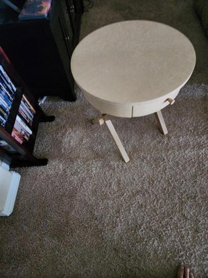 This little side table is a nice addition to our home and can be used in several ways. We chose to use it as an accent table in our dining room in an odd corner that was kind of plain all by itself. We placed a small plant atop it and it looks nice! I like that it has a little drawer as that will definitely come in handy. There are only two things about this table that I do not care for. The the two wood plugs are an unnecessary addition. They fit too loosely and easily fall out. I could glue them in but if the screws need to be tightened that would be hard to do with the plugs being glued in. I will likely remove them later down the road. The table is a bit unstable no matter the surface I put it on like one of the legs is just a tad short. I will be putting something under them to correct that as I don't want it scratching my floors anyway. Other than that, I do like this table which is made of rubberwood and has a wood veneer tabletop. All in all, if you are looking for a nice little side table/accent table this Wasatch table may suit your needs.