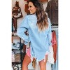 Beau Blue Mineral Wash Distressed Frayed Long Denim Jacket