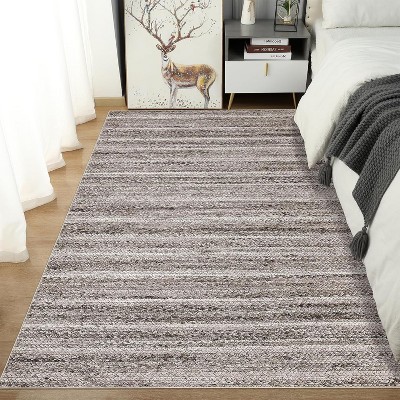 Washable 10x13 Area Rug Large Printed Braid Rugs Non-Slip Soft Carpet Non-Shedding Ultra-Thin Floor Carpet Traditional Accent Rug, Grey+Camel