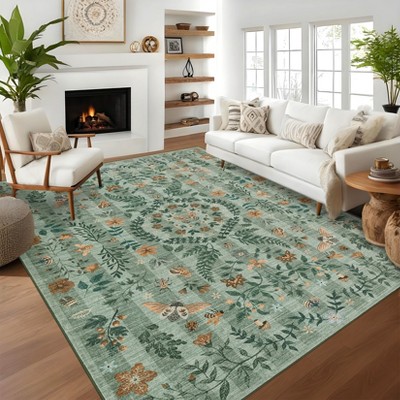 Washable 9x12 Area Rugs for Living Room Non Slip Modern Solid Bordered Soft Carpet Foldable Neutral Floor Rugs Indoor, Green