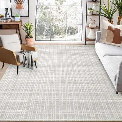 Washable Accent Rug, Modern Abstract Neutral Soft Carpet, Non-Slip Low Pile Mat for Living Room Bedoom Kitchen Hallway Laundry Room, Blue 10*13ft
