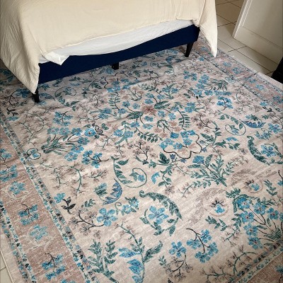 Washable Area Rug, 5x7 Boho Floral Soft Rugs for Living Room, Non Slip Low Pile Carpet for Bedroom, Dining Room, Nursery, Hallway, Blue: Pet Friendly