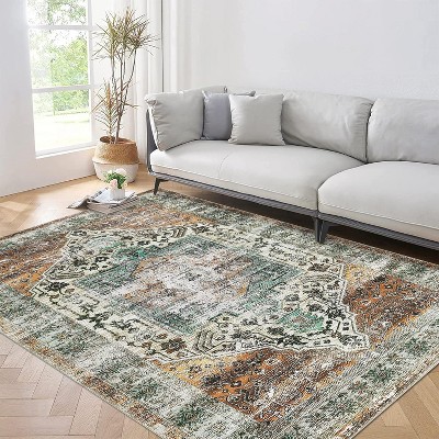 COZONY Washable Area Rug for Living Room, Vintage Distressed Accent Carpet, Non-Slip, Low Pile, Stain Resistant