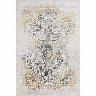 2x6 Washable Runner Rug Modern Geometric Bordered Rug Low Pile Non Slip Floor Carpet, Soft Non Shedding Hallway Runner, Distressed Thin Runner