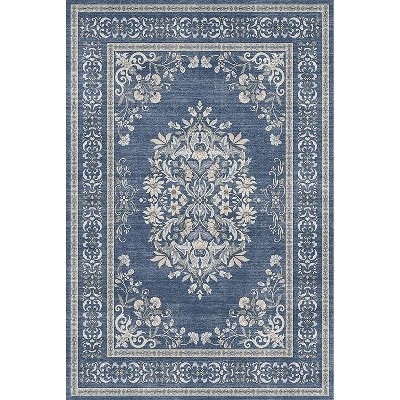 Washable Area Rug, Non-Slip Vintage Low-Pile Indoor Carpet, Distressed Floral Print, Ultra Soft Foldable