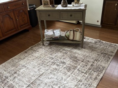 Washable Area Rug 5 x 7 Vintage Distressed Throw Rug with Non-Slip Backing Stain-Resistant Oriental Indoor Carpet Foldable Low Pile Floor Cover
