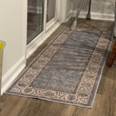 This rug is very pretty and soft to walk or sit on. It doesn’t slip on the floor. Very pleased with this