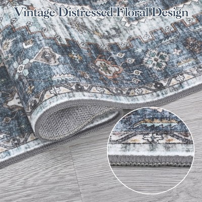Washable Area Rugs Floral Living Room Bedroom Carpet Non-Slip Low Pile Vintage Soft Thin Throw Rug