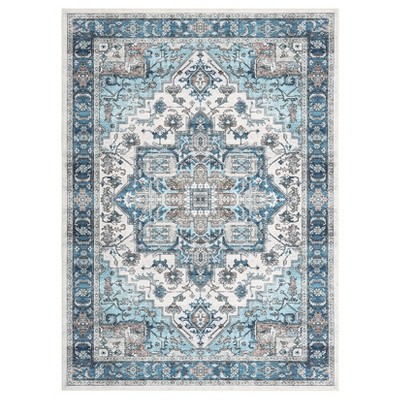 Washable Christmas Runner Rug, Low Pile Non Slip Floor Carpet, Non-Shedding Snowflake Mat for Bedside Entryway Kitchen Holiday Decor, Red+Blue 4*6ft