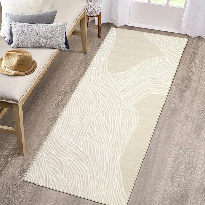 Washable Floral Area Rug 2x6 FT, Non-Slip Low Pile Carpet for Living Room, Bedroom & Office Rug with Floral Pattern, Beige