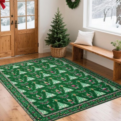 Washable Floral Bird Rug - Non Slip, Low Pile, Soft, Non Shedding, Stain Resistant