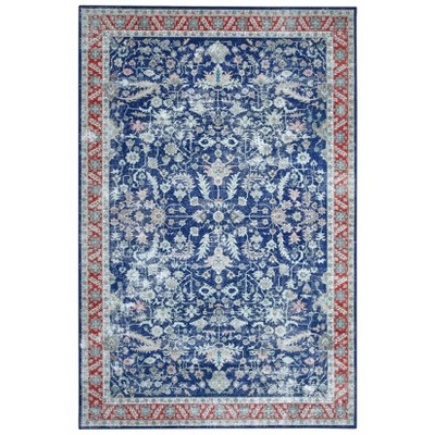 4'x6' Washable Floral Living Room Rugs, Distressed Chenille Non Slip Bedroom Carpet, Retro Accent Large Throw Rugs for Dining Room Kitchen, Grey