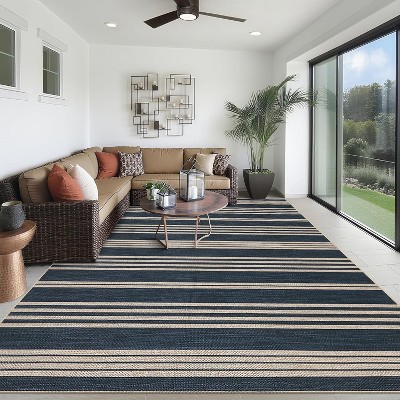 Washable Indoor Area Rug, Ultra Thin Non Slip Stain Resistant Floor Mat, Low Pile Soft Carpet for Living Room Dining Room Bedroom, Blue 9*12Ft