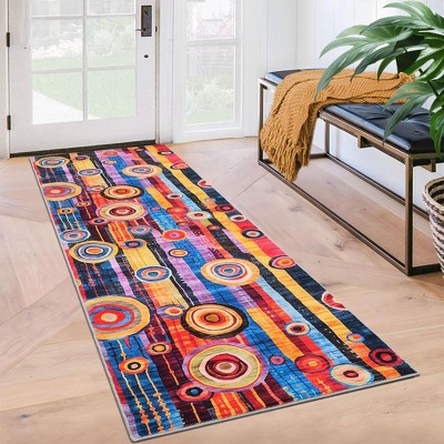 This rug is colorful and fun and surprise, it looks great in my office on hardwood flooring. So cheerful.