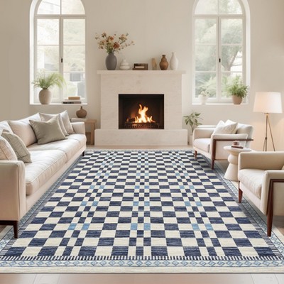 Washable Modern Red Snowflake Xmas Rug Non Slip Low Pile Rug Soft Throw Floor Cover Foldable Indoor Carpet for Living Room Bedroom,Blue/10'x13'
