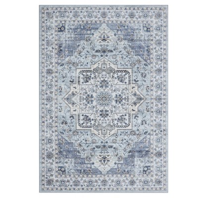 Washable Modern Solid Textured Rug Non Slip Low Pile Rug Soft Throw Floor Cover Foldable Indoor Carpet for Living Room Bedroom,Blue/5'×7'