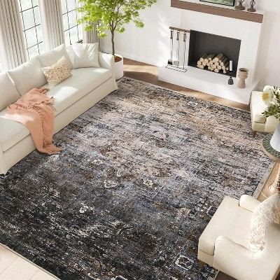 4x6 Washable Ombre Vintage Distressed Area Rug, Low Pile Non-Slip Soft Carpet for Bedroom, Living Room, Dining Room, Office, Blue/Beige