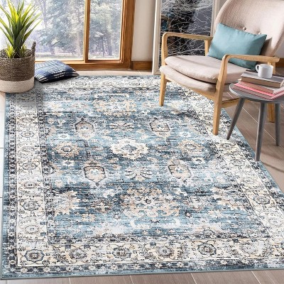 Washable Plaid Area Rug, Non-Slip Low Pile, Stain Resistant,Rustic Soft Carpet for living room, bedroom, office, or dining room,8*10ft Blue
