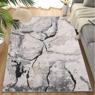 Washable Rug 5x7 Beige Rug for Living Room, Non-Shedding Foldable Modern Carpet with Non Slip Rubber Backing, Minimalist Low Pile Thin Indoor Mat