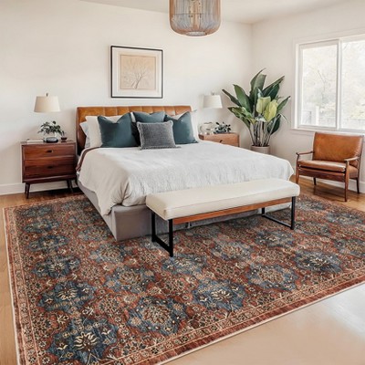 Washable Rug 9x12 Boho Abstract Rug Vintage Distressed Floral Soft Low Pile Floor Carpet for Living Room