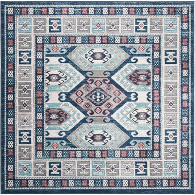 Washable Rug Low Pile Non Slip Indoor Carpet - Blue Bordered Modern Floor Cover for Living Room, Bedroom, Home Office