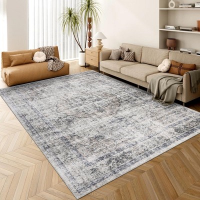 Washable Rug Modern Interwoven Lines Low Pile Indoor Carpet with Stain Resistant & Non Slip Backing for Living Room Bedroom Kitchen