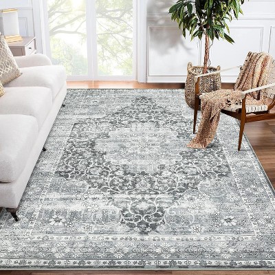 Washable Rug Modern Marble Rug, Ultra-Thin Area Rug for Living Room with Non Slip, Boho Marble Pattern Area Rug for Kitchen, 8'x10', Ash