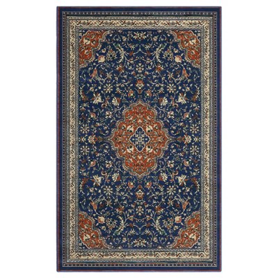 Washable Rugs 8x10 Non-Slip - Large Traditional Oriental Area Rug with Distressed Floral Print, Machine Washable Blue