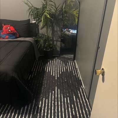 Highlights at a Glance:modern geometric striped designultra-soft pearl velvet feelmachine washable & easy carenon-slip TPR backinglow pile for high-traffic areasfoldable and non-shedding rug
