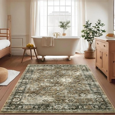 Washable Rugs for Living Room 8x10 Non-Slip Farmhouse Botanical Area Rugs, Low Pile Stain-Resistant Vintage Carpet, Soft Foldable Print Floor Mats